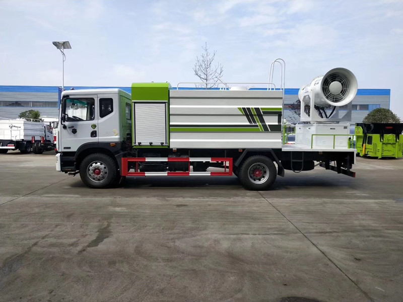 東風D9大型12方灑水車-12方霧炮灑水車性能簡介:吸程≧7米,灑水寬度≧14-16米,射程≧25-40米,引水時間<5min,流量60m3/h。前沖(噴)、后灑、帶側噴(花灑)、帶后工作平臺、平臺上安裝綠化灑水高炮(炮噴射形狀可調節(jié):直沖、大雨、中雨、毛毛雨、霧狀、可連續(xù)調節(jié),360°旋轉),配消防接口,自流閥,濾網,帶自吸自排功能。安裝60-80米霧炮,霧炮可以遙控操作,可以手動操作,按霧炮大小配多大功率發(fā)電機