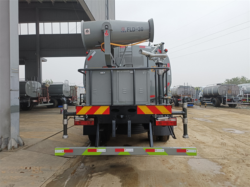 東風(fēng)D9霧炮灑水車整車型號 CLT5160TDYEQ6 型多功能抑塵車 2 發(fā)動(dòng)機(jī)型號 D4.0NS6B195 3 發(fā)動(dòng)機(jī)馬力/功率 康明斯 195 馬力/143KW 4 發(fā)動(dòng)機(jī)排量 4000ML 5 變速箱 法士特 8 檔(帶高低檔) 6 輪胎規(guī)格 275 真空胎 7 軸距 3950 8 總質(zhì)量 16200KG 9 整備質(zhì)量 6750KG 10 額定載質(zhì)量 9255KG 11 整車尺寸(長×寬×高) 7.75*2.5*3.2 12 罐體容積 12 方 13 燃料種類 柴油 14 排放標(biāo)準(zhǔn) 國六 15 水泵型號 60/90 16 罐體材質(zhì) Q235 碳鋼. 灑水車產(chǎn)品功能展示 前沖鴨嘴 后灑 后對沖 高炮 高位花灑 側(cè)噴 霧炮