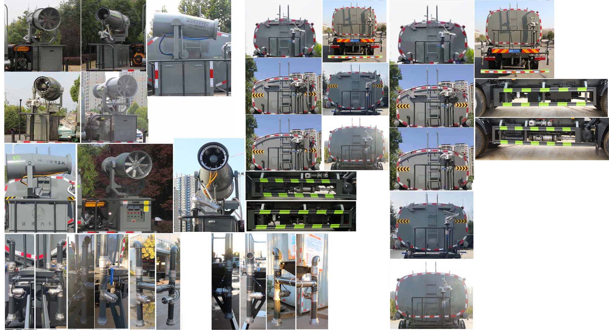 我公司產品標配前噴(鴨嘴)、后沖、后灑、側噴、后置式工作 平臺,平臺上配置綠化水炮(可 360°旋轉,既可以調成柱狀,也可 以調成霧狀,更可以調成直沖狀、大雨、中雨、小雨、毛毛雨),配 備優(yōu)質大功率專用灑水泵(可自吸自排,可從河里或池塘抽水到罐體), 取力器,雜物過濾網,消防接口,自流球閥系統(tǒng)、取力器、球閥、濾網 均為國家標準產品,主管道加粗,法蘭墊、法蘭盤加厚,大通徑球閥。 整體具備性能優(yōu)良安全可靠、效率高、流量大、維修方便等特點。