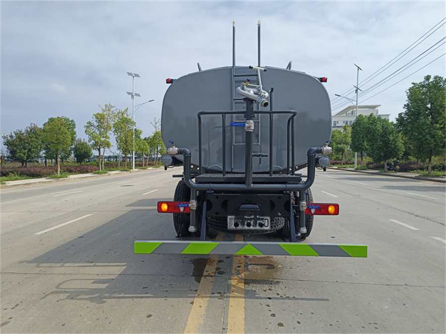 標配前噴 (鴨嘴) 、后沖、后灑、側噴、后置式工作 平臺,平臺上配置綠化水炮 (可 360°旋轉,既可以調成柱狀,也可 以調成霧狀,更可以調成直沖狀、大雨、中雨、小雨、毛毛雨) ,配 備優質大功率專用灑水泵(可自吸自排,可從河里或池塘抽水到罐體), 取力器,雜物過濾網,消防接口, 自流球閥系統、取力器、球閥、濾網 均為國家標準產品