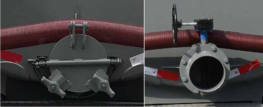 ABS型號:APG3550500A;ABS生產企業:浙江亞太機電股份有限公司;側后防護情況:側、后防護材料均為:Q235碳鋼,側面防護連接方式為:螺栓連接,后防護連接方式為:焊接連接,后部防護截面尺寸(mm):220×50,后部防護離地高度(mm):490;罐體總容量:2.18立方米;罐體有效容積:2.08立方米;罐體外形尺寸(長×長軸×短軸)(mm):2800×1450×800;專用功能及裝置:主要專用裝置:罐體及吸糞裝置,主要用于抽排運污水、糞便、泥漿等液態污物;選裝ABS廠家及型號:襄陽東風隆誠機械有限責任公司/ABS/ASR-12V-4S/4M.選裝后部出口樣式。隨底盤選裝駕駛室。