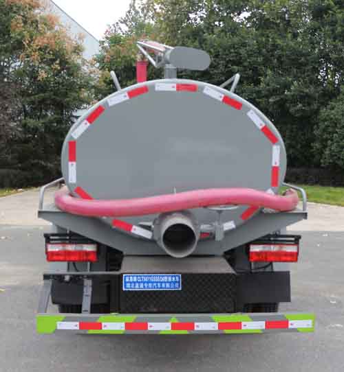 罐體總容量:4.63立方米;罐體有效容積:4.41立方米;罐體外形尺寸(長×長軸×短軸)(mm):3500×1650×1200;隨底盤選裝燃油箱,電瓶,尿素罐,儲氣筒左右安裝位置,選裝側面及后部樣式。ABS型號:ABS/ASR-12V-4S/4M;ABS生產企業:襄陽東風隆誠機械有限責任公司;選裝描述:隨底盤選裝駕駛室;側、后防護材料均為:Q235碳鋼,連接方式均為:螺栓連接,后部防護截面尺寸(mm):120×50,后部防護離地高度(mm):420;專用功能及裝置:主要專用裝置:罐體及吸糞裝置,主要用于抽排運污水、糞便、泥漿等液態污物.