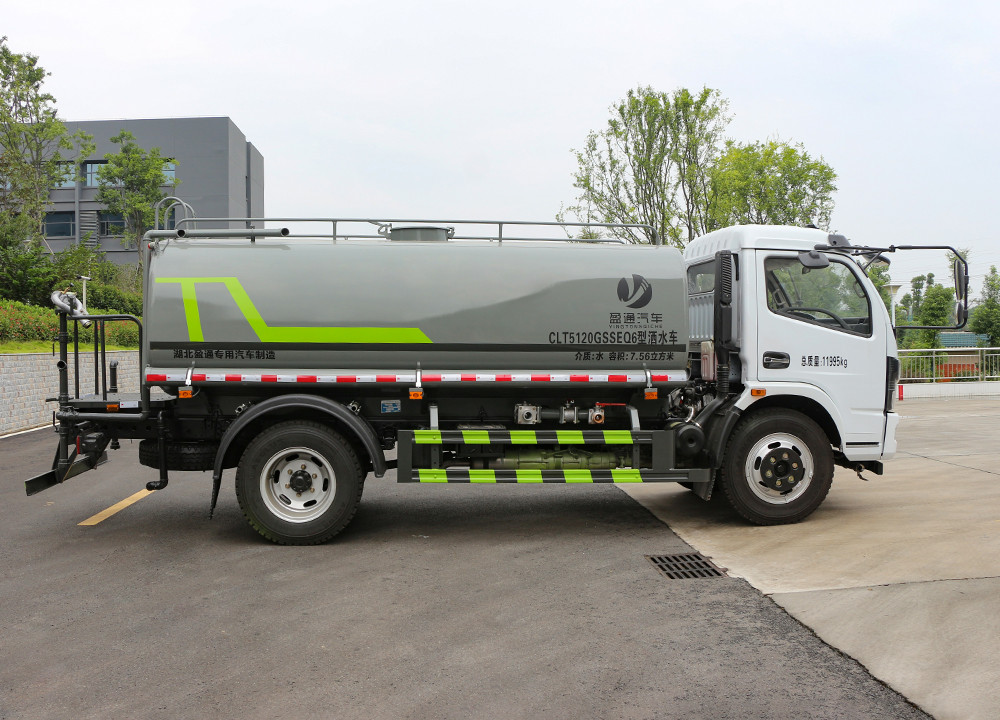 東風灑水車產品主要技術參數 序號 名稱 型號、規格 1 整車型號 CLT5120GSSEQ6 型灑水車 2 發動機型號 D25TCIF1 3 發動機馬力/功率 云內 150 馬力/110KW 4 發動機排量 2499ML 5 變速箱 萬里揚 6 檔 6 輪胎規格 8.25 鋼絲胎 7 軸距 3800 8 總質量 11995KG 9 整備質量 4600KG 10 額定載質量 7200KG 11 整車尺寸(長×寬×高) 7.1*2.25*2.8 12 罐體容積 9.3 方 13 燃料種類 柴油 14 排放標準 國六 15 水泵型號 40/50 16 罐體材質 Q235 碳鋼