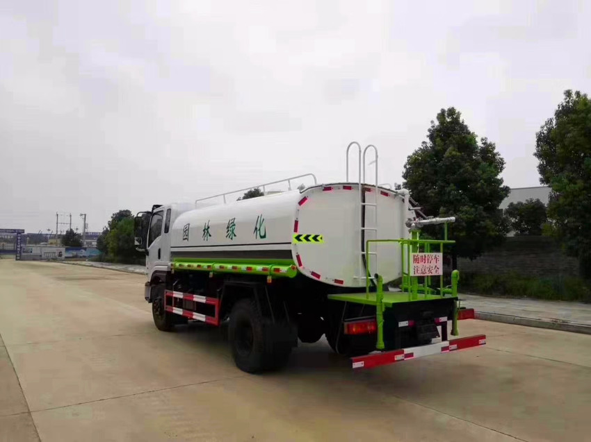 灑水車吸程≧7米,灑水寬度≧14-16米,射程≧25-40米,引水時間<5min,流量60m3/h。前沖(噴)、后灑、帶側噴(花灑)、帶后工作平臺、平臺上安裝綠化灑水高炮(炮噴射形狀可調節:直沖、大雨、中雨、毛毛雨、霧狀、可連續調節,360°旋轉),配消防接口,自流閥,濾網,帶自吸自排功能。配備大功率專用灑水泵,泵可自吸自排,安裝過濾網,帶消防接口,可通過消防栓進水,帶自流閥,此車尾部加裝大功率農藥噴灑炮,噴灑狀態霧狀,有效射程15-45米,外部平臺帶獨立的機組