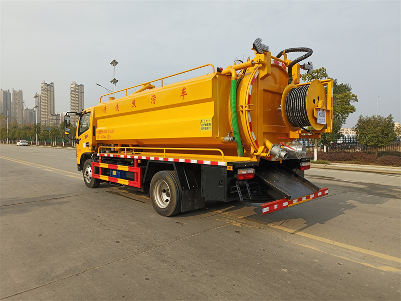 清洗吸污車該車用于下水道排污及疏通,專用裝置:罐體、清洗吸污裝置總成;該車具有舉升功能;罐體外形尺寸(罐體總長×直徑)(mm):4600×1600,邊掛清水罐尺寸(長×寬×高)(mm):3900×550×1090.污水罐總容量:7.47立方米,污水罐有效容積:7.11立方米,介質:液態污物,密度800千克/立方米;清水罐有效容積:3.5立方米,介質:水,密度1000千克/立方米;清水罐和污水罐為獨立罐體,清洗功能時用清水罐,吸污功能時用污水罐,污水罐和清水罐不可同時滿載,兩罐不可同時使用.ABS型號/廠家:ABS型號:ABS/ASR-24V-4S/4M,廠家:襄陽東風隆誠機械有限責任公司;側、后防護材料均為:Q235碳鋼,側、后防護均為焊接連接,后部防護截面尺寸(mm):120×50,后部防護離地高度(mm):430;僅采用底盤3800mm軸距改裝.隨底盤選裝駕駛室,選裝側面樣式.隨底盤選裝限速裝置,限速為89km/h.選裝后部樣式.