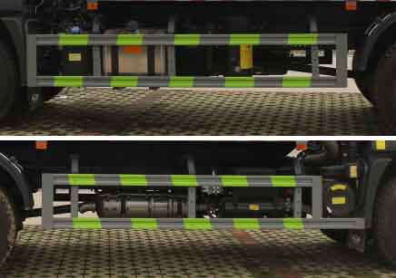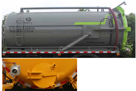 該車用于吸除水坑、下水道里污濁物;主要裝置有罐體及吸污裝置;該車具有舉升功能。隨底盤選裝駕駛室,罐體總容量:11.16立方米;罐體有效容積:10.63立方米;罐體外形尺寸(總長×直徑)(mm):5400×1800;ABS型號為CM4XL-4S/4M,生產廠家為廣州瑞立科密汽車電子股份有限公司;側、后防護材料均為:Q235碳鋼,連接方式均為:螺栓連接,后部防護截面尺寸(mm):120×50,后部防護離地高度(mm):450.僅采用底盤4500mm軸距改裝.選裝后部出口樣式;選裝左側樣式;選裝油箱出口及電瓶位置.