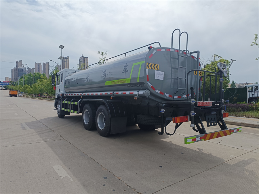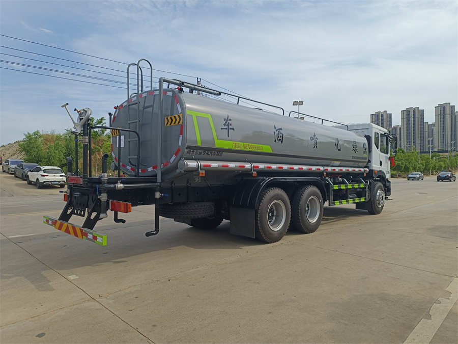 東風(fēng)20噸灑水車產(chǎn)品標(biāo)配前噴(鴨嘴)、后沖、后灑、側(cè)噴、后置式工作 平臺(tái),平臺(tái)上配置綠化水炮(可 360°旋轉(zhuǎn),既可以調(diào)成柱狀,也可 以調(diào)成霧狀,更可以調(diào)成直沖狀、大雨、中雨、小雨、毛毛雨),配 備優(yōu)質(zhì)大功率專用灑水泵(可自吸自排,可從河里或池塘抽水到罐體), 取力器,雜物過濾網(wǎng),消防接口,自流球閥系統(tǒng)、取力器、球閥、濾網(wǎng) 均為國家標(biāo)準(zhǔn)產(chǎn)品,主管道加粗,法蘭墊、法蘭盤加厚,大通徑球閥。 整體具備性能優(yōu)良安全可靠、效率高、流量大、維修方便等特點(diǎn)