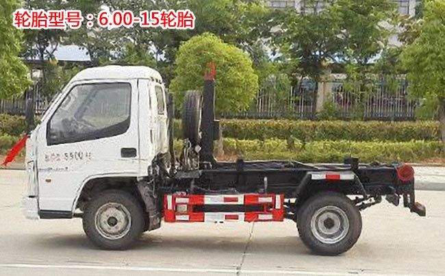 配套3~4立方米勾臂垃圾箱,雙杠液壓,高強度勾臂,國產液壓系統,油泵,帶后鎖緊裝置,滾輪。