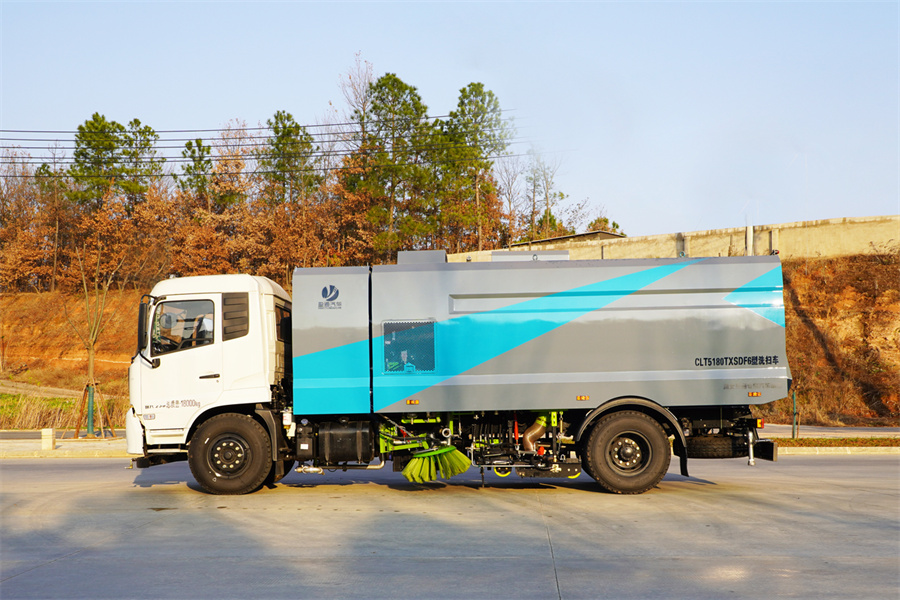 | 國六東風(fēng)天錦洗掃車 | 采用東風(fēng)天錦DFH1180EX8型底盤,達(dá)到國Ⅵ排放,垃圾箱容積9立方米,水箱容積7立方米,是自動化程度高的道路清掃車 |