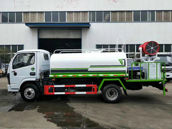 5噸灑水車上裝配置:罐體用4MM碳鋼板制作,罐內隔板具有防波作用,以減低汽車行駛時罐體液體的沖擊。整車帶一個專用灑水泵(垂直*大吸程9米),灑水寬度14米,射程28米。多功能灑水車配備2個前沖(噴)(能將路面泥巴、塵土、垃圾沖干凈);2個后灑(能均勻地將水灑在路面,一次灑水寬度14米)、2個側噴(花灑)(能均勻地將路旁綠化帶澆灌)、帶1個后工作平臺,平臺上安裝1個綠化灑水高炮(灑水炮可旋轉,可連續調成直沖狀、大雨、小雨、毛毛雨,霧狀可調節沖洗高大樹木)。帶1個消防接頭,帶1個自流閥,1個過濾裝置、人性化爬梯及側防護欄,安裝灑水音樂喇叭。