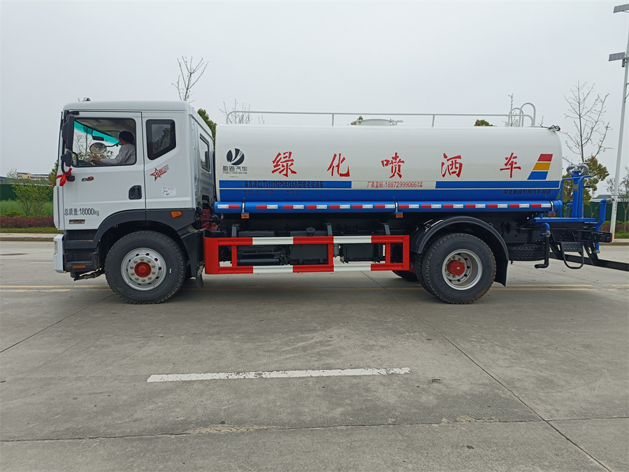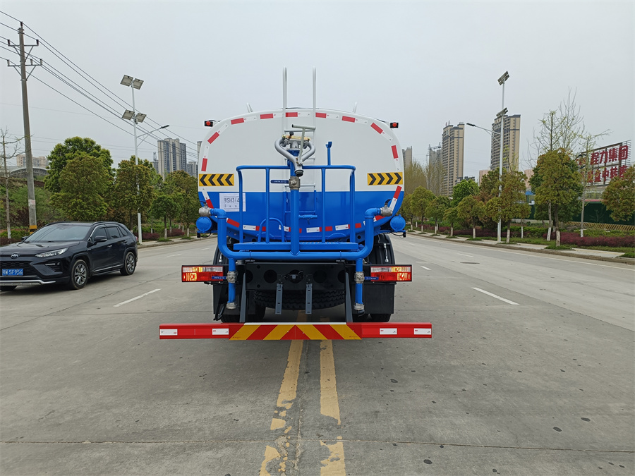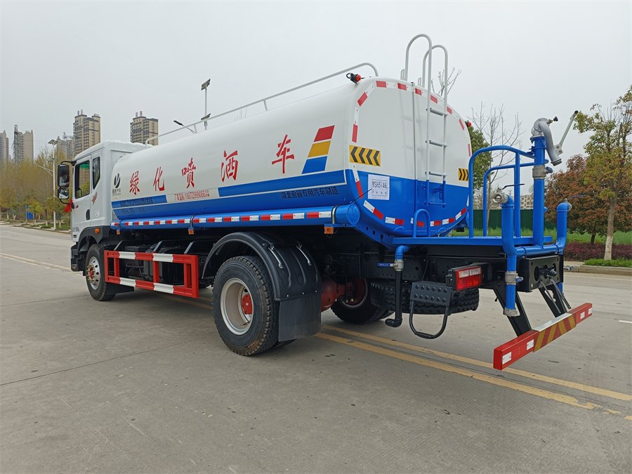 灑水車產(chǎn)品標(biāo)配前噴(鴨嘴)、后沖、后灑、側(cè)噴、后置式工作 平臺(tái),平臺(tái)上配置綠化水炮(可 360°旋轉(zhuǎn),既可以調(diào)成柱狀,也可 以調(diào)成霧狀,更可以調(diào)成直沖狀、大雨、中雨、小雨、毛毛雨),配 備優(yōu)質(zhì)大功率專用灑水泵(可自吸自排,可從河里或池塘抽水到罐體), 取力器,雜物過濾網(wǎng),消防接口,自流球閥系統(tǒng)、取力器、球閥、濾網(wǎng) 均為國(guó)家標(biāo)準(zhǔn)產(chǎn)品,主管道加粗,法蘭墊、法蘭盤加厚,大通徑球閥。 整體具備性能優(yōu)良安全可靠、效率高、流量大、維修方便等特點(diǎn)。