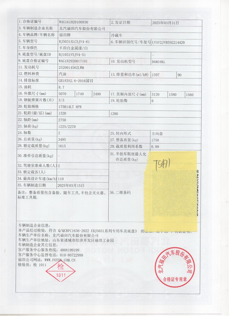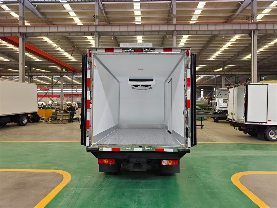 廂體采用內(nèi)外玻璃鋼板材制作,中間填充8cm 厚高密度保溫材料,底板選用加厚型防滑花紋鋁板,鋁合金型材包邊,不銹鋼門鎖件,后雙開門,帶單側(cè)開門,匹配零下15度制冷機(jī)組。其余按冷藏車標(biāo)配制作。提供機(jī)動車上戶手續(xù)(機(jī)動車合格證、上戶發(fā)票、車輛保修手冊、隨車工具)。