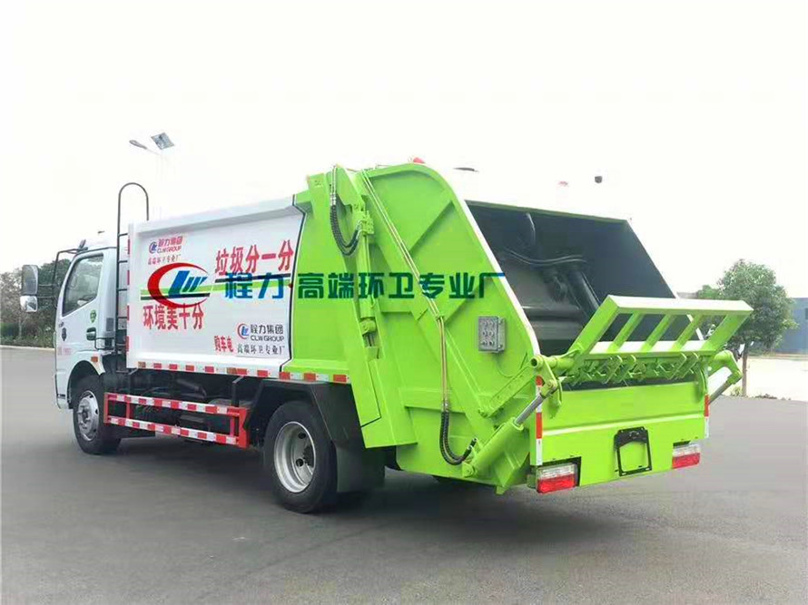 新款平面弧形廂體,廂體材料為武鋼優(yōu)質(zhì)碳鋼,外箱尺寸:7340×2350×2800mm,有效壓縮容積8立方,采用邊四底四優(yōu)質(zhì)鋼板制作,國(guó)內(nèi)知名品牌博利液壓油缸,杰特油管,揚(yáng)州中梅多路閥,皖液齒輪油泵,西門子PLC電控開關(guān)。壓縮式垃圾車采用機(jī)電液一體化技術(shù),借助機(jī)、電、液聯(lián)合自動(dòng)控制系統(tǒng)、電腦控制、手動(dòng)操作系統(tǒng),通過填裝器和推鏟等專用裝置,實(shí)現(xiàn)垃圾倒入、壓碎或壓扁、強(qiáng)力裝填,把垃圾擠入車廂并壓實(shí)和推卸,污水全部進(jìn)入污水收集箱,解決了垃圾運(yùn)輸過程中的二次污染的問題。壓縮式垃圾車具有自動(dòng)反復(fù)壓縮以及蠕動(dòng)壓縮功能,壓縮比高、密封性好、裝載量大﹑操作方便、環(huán)保性好﹑整車?yán)霉β矢叩葍?yōu)點(diǎn)。