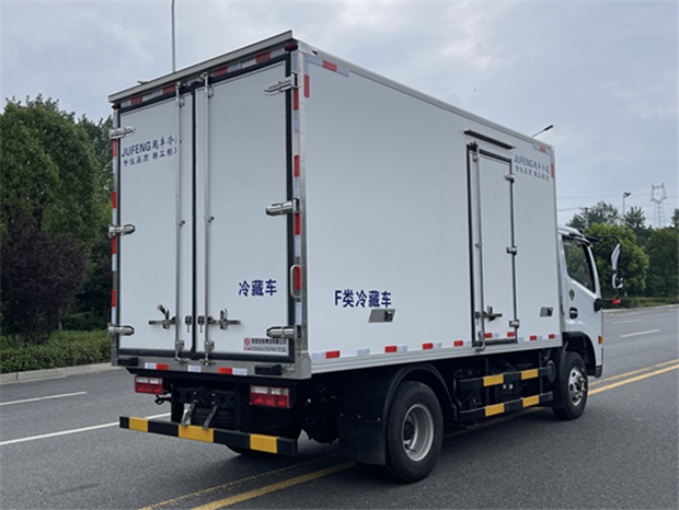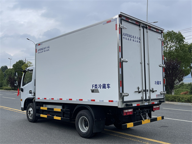 東風(fēng)新能源冷藏車廂體配置為:采用斷橋隔熱工藝,整體框架結(jié)構(gòu)制作,廂體內(nèi)、外壁材料為玻璃鋼板,采用高密度保溫層,廂板內(nèi)帶有骨架,廂體厚度80mm,門框,門飾件、包角全部使用不銹鋼材質(zhì)。最新款鋁合金包邊型材,廂體內(nèi)采用LED照明燈及廂體示寬燈;門框密封條為橡膠材質(zhì),后門梁帶加厚防撞塊,加厚型不銹鋼鉸鏈及鎖件。車體副梁采用510L高強(qiáng)度鋼制作,底板為鋁花紋板,車廂后門帶一個(gè)上車扶手,其余標(biāo)配;