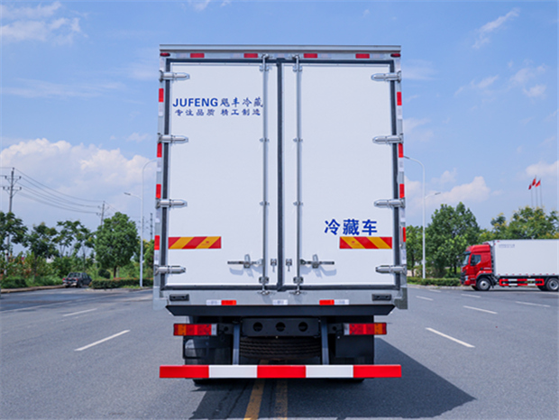 東風(fēng)天錦6米8冷藏車廂體配置為:斷橋隔溫工藝,整體結(jié)構(gòu)框架,內(nèi)外面料為3mm新款啞光玻璃鋼夾保溫層真空復(fù)合而成,廂體厚度為8cm,最新款鋁合金包邊型材,型材局部厚度為4mm(鋼制鉚釘加固),廂體內(nèi)部采用2個(gè)LED照明燈及廂體示寬燈,后門框不銹鋼材質(zhì),門框密封條為三元乙丙橡膠材質(zhì),加厚型不銹鋼合頁(yè)及鎖件;副梁為Q700車用大梁鋼,15mm厚大梁墊皮,加裝防撞膠塊,不銹鋼門鎖件,配后雙開門,副駕駛一側(cè)居中靠前開單側(cè)門一個(gè),帶2個(gè)排水孔。