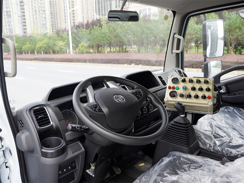 東風多利卡掃路車配置:發動機全柴 140馬力,萬里揚 6檔變速箱,1730 單排駕駛室, 2T 前橋,3.5T 后橋,7.00 鋼絲胎,軸距 3308,氣剎,ABS,空調,電 動玻璃,中控鎖 。