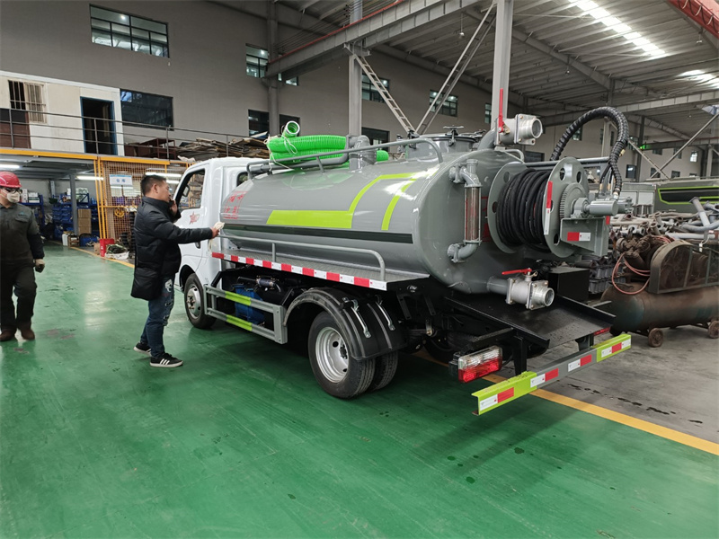 藍(lán)牌小型清洗吸污車(chē)。一體罐,容積3.4立方,水污互通,(配山東SK-6水循環(huán)泵,或配億豐3噸油泵帶油水分離器) 品孚130L流量高壓泵,防溢閥,視污管,罐體后上一個(gè)100球閥吸口,帶60米19高壓管,罐體尾部視污管,罐體后部一個(gè)100排污閥,8米吸污管一根