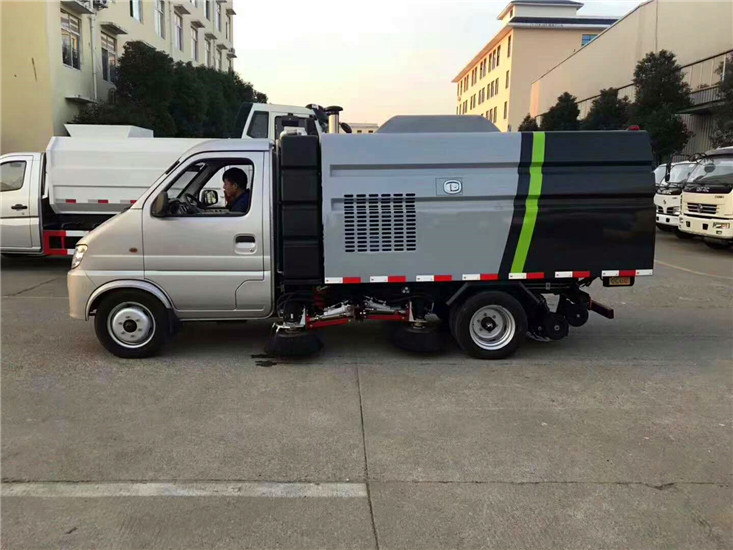 長安小型道路洗掃車掃路車清掃作業寬度約2.2m,吸入粒度φ80mm,清掃速度每小時5-20 km,清掃時可噴霧狀水,全面杜絕二次環境污染。
