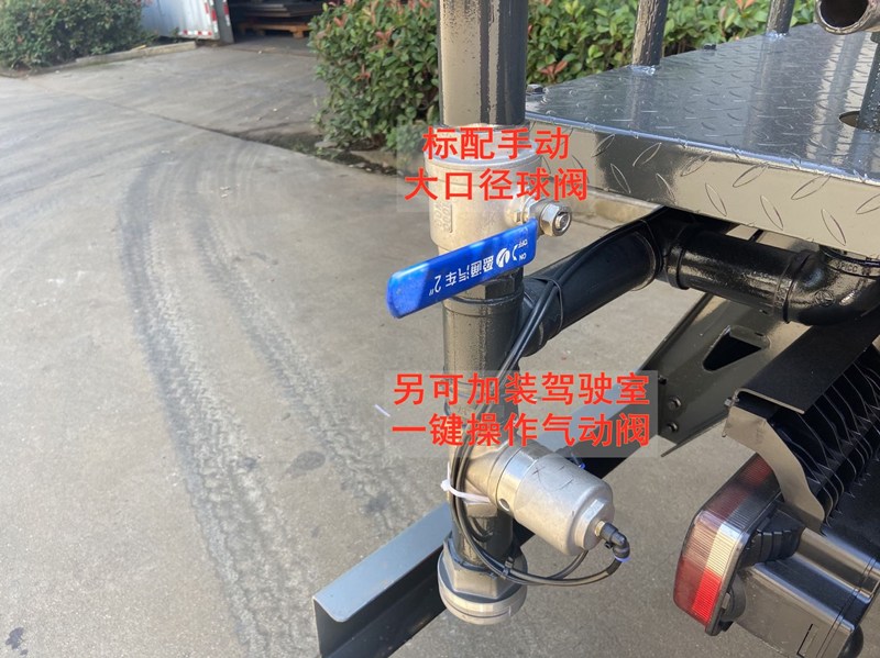 選裝配置: 1、可選裝4個或6個駕駛室內操作氣動球閥; 2、可選裝前置電子灑水炮駕駛室一鍵操作。 3、可另加裝箭頭燈一對! |