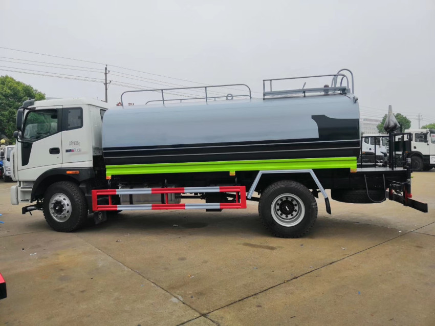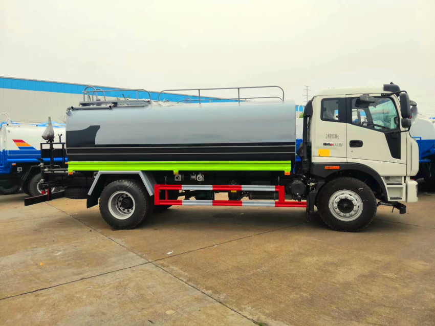福田瑞沃灑水車15噸灑水車改裝配置:罐體用4MM碳鋼板制作,罐內隔板具有防波作用,以減低汽車行駛時罐體液體的沖擊。整車帶一個專用灑水泵(垂直最大吸程6米),灑水寬度 14米,射程28米。多功能灑水車配備2個前沖(噴)(能將路面泥巴、塵土、垃圾沖干凈);2個后灑(能均勻地將水灑在路面,一次灑水寬度14米)、2個側噴 (花灑)(能均勻地將路旁綠化帶澆灌)、帶1個后工作平臺,平臺上安裝1個綠化灑水高炮(灑水炮可全方位旋轉,可連續調成直沖狀、大雨、小雨、毛毛 雨,霧狀可調節沖洗高大樹木),引水時間<5min,流量90m3/h。帶1個消防接頭,帶1個自流閥,1個過濾裝置、人性化爬梯及側防護欄,安裝灑水音樂喇 叭。