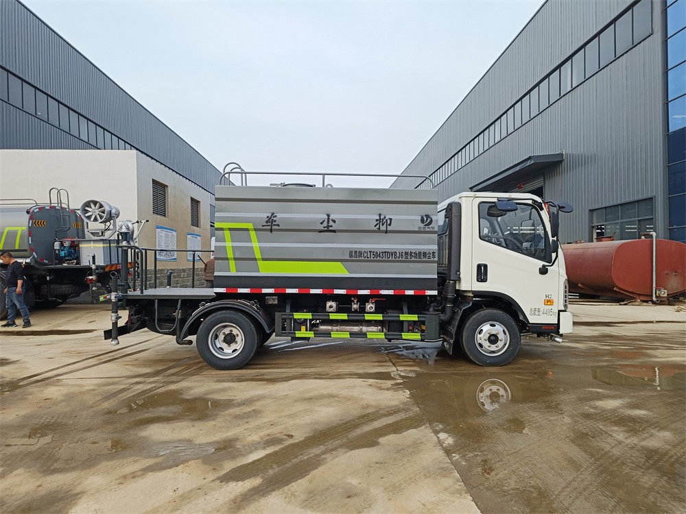 福田 H2 藍牌 5 方灑水車-5方罐抑塵車產品主要技術參數 序號 名稱 型號、規格 1 整車型號 CLT5043TDYBJ6 型多功能抑塵車 2 發動機型號 Q23-115C60 3 發動機馬力/功率 全柴 115 馬力/85KW 4 發動機排量 2300ML 5 變速箱 萬里揚 5 檔 6 輪胎規格 7.00 鋼絲胎 7 軸距 3360 8 總質量 4495KG 9 整備質量 3800KG 10 額定載質量 500KG 11 整車尺寸(長×寬×高) 5.998*1.99*2.6 12 罐體容積 5 方 13 燃料種類 柴油 14 排放標準 國六 15 水泵型號 40/50 16 罐體材質 Q235 碳鋼