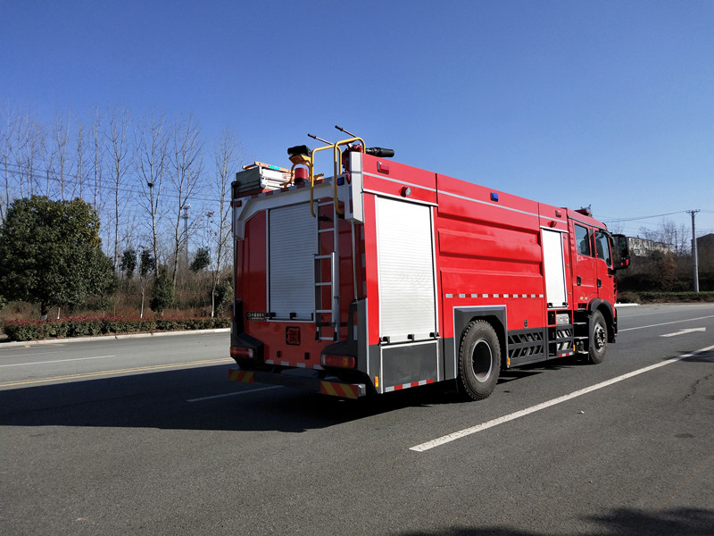 功能介紹:與灑水車相比,繼承了灑水車的全部功能,同時也彌補了灑水車射程小,壓力小等問題。消防灑水車除了裝備消防水泵及器材以外,還設有較大容量的貯水罐及水槍、水炮等。可將水和消防人員輸送至火場獨立進行撲救火災。它也可以從水源吸水直接進行撲救,或向其他消防車和滅火噴射裝置供水。優于消防車的功能:因為沒有消防車器材箱,底盤高度及車輛寬度更適應山間、鄉鎮、鄉村的路況,是森林消防、鄉鎮和鄉村消防的有利消防工具。