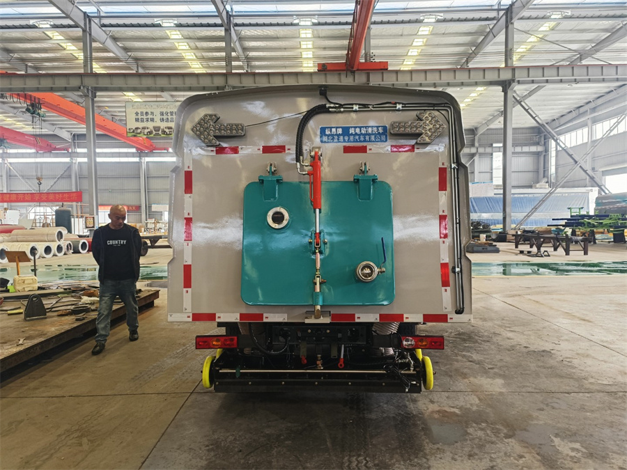 該車主要用于道路清掃,主要專用裝置為箱體和清掃裝置總成;側防護材料為:Q235碳鋼+鋁合金,連接方式為螺栓連接;后防護由專用裝置代替,后防護離地高度(mm):170;蓄電池為磷酸鐵鋰蓄電池,單體生產企業為:寧德時代新能源科技股份有限公司;總成生產企業為:寧德時代新能源科技股份有限公司;驅動電機類型為永磁同步電機,型號為FTTBP100A,額定功率為50kW,峰值功率為100kW,生產企業為北汽福田汽車股份有限公司.ABS型號是CM0953YL,生產企業是廣州瑞立科密汽車電子股份有限公司;后部箭頭燈僅在車輛作業時開啟.