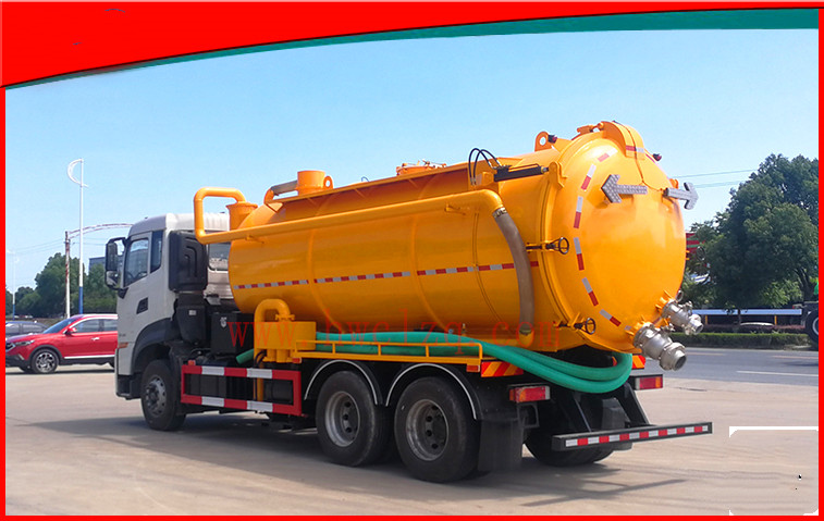 上裝為一體式罐體結(jié)構(gòu),分污水罐和清水罐兩部分,采用優(yōu)質(zhì)碳鋼制作而成,罐體厚度為8毫米,罐體內(nèi)部均安裝有爬梯,底部焊有1.6米左右的不銹鋼底板,罐體外部也安裝有爬梯。清水罐頂部安裝有排氣閥,底部安裝有排水閥。清洗部分選用350大流量高壓泵,雙向進(jìn)水,帶氣吹水功能,高壓泵安裝有過濾網(wǎng),標(biāo)配100米高壓管,后封頭8毫米厚,尾部液壓絞盤可旋轉(zhuǎn)180度,加裝有節(jié)流閥,用于控制快慢。整車上裝搭配有420馬力副發(fā)動機(jī),標(biāo)配大型水循環(huán)泵,搭配不銹鋼水循環(huán)泵水箱,吸污管標(biāo)配長度為10米。后封頭標(biāo)配有6寸球閥1個(gè),4寸球閥3個(gè),直徑600mm的液壓開啟蓋,方便排放污水,罐體帶液壓舉升功能,排污快捷方便。