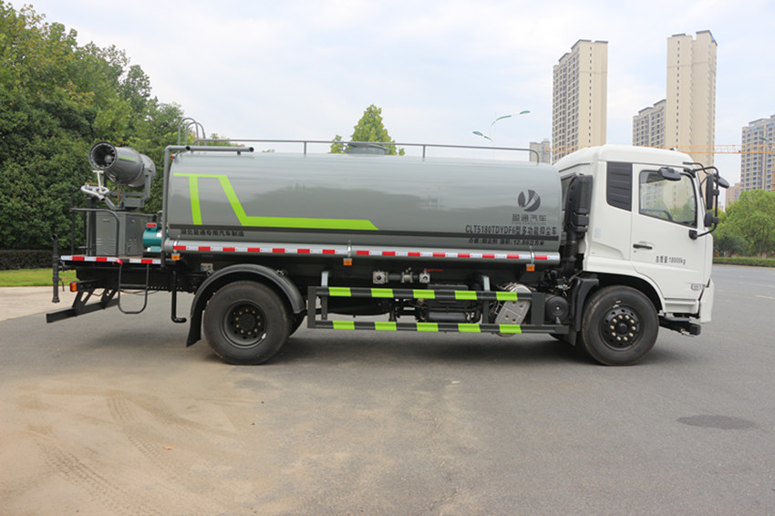 東風天錦16方抑塵車產品主要技術參數 序號 名稱 型號、規格 1 整車型號 CLT5180TDYDF6 型多功能抑塵車 2 發動機型號 B6.2NS6B210 3 發動機馬力/功率 康明斯 210 馬力/154KW 4 發動機排量 6200ML 5 變速箱 東風 6 檔 6 輪胎規格 10.00 鋼絲胎 7 軸距 4700 8 總質量 18000KG 9 整備質量 8000KG 10 額定載質量 9805KG 11 整車尺寸(長×寬×高) 8.6*2.5*3.2 12 罐體容積 16 方 13 燃料種類 柴油 14 排放標準 國六 15 水泵型號 60/90 16 罐體材質 Q235 碳鋼