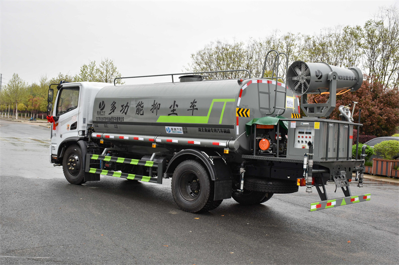 抑塵車具體配置:底盤部分,采用原廠東風(fēng)底盤,云內(nèi)150馬力發(fā)動機(jī),3800mm軸距,萬里揚(yáng)6檔變速箱,8.25R20輪胎,國六排放標(biāo)準(zhǔn),帶空調(diào),氣囊座椅,多功能方向盤,專用部分,罐體采用優(yōu)質(zhì)碳鋼材質(zhì)制作,帶兩個(gè)前沖噴頭、兩個(gè)后灑噴頭、兩個(gè)側(cè)噴、后工作平臺、尾部安裝綠化炮,綠化炮可以自行調(diào)節(jié)(柱狀,大雨,中雨,小雨,霧狀),帶專用灑水泵可以實(shí)現(xiàn)自吸自排,帶消防接口,兩根輸水管,加裝30型柴油霧炮,帶底盤合格證和整車合格證