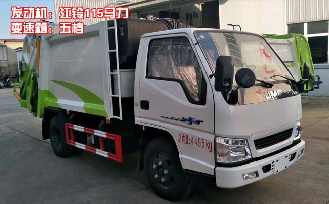 江鈴順達(dá)藍(lán)牌壓縮式垃圾車(chē),江鈴順達(dá)原裝底盤(pán),2800軸距,國(guó)五江鈴115馬力柴油電噴發(fā)動(dòng)機(jī)(型號(hào):JX493ZLQ5),五檔變速箱,方向助力,油剎,7.00R16鋼絲胎,ABS,空調(diào)。
