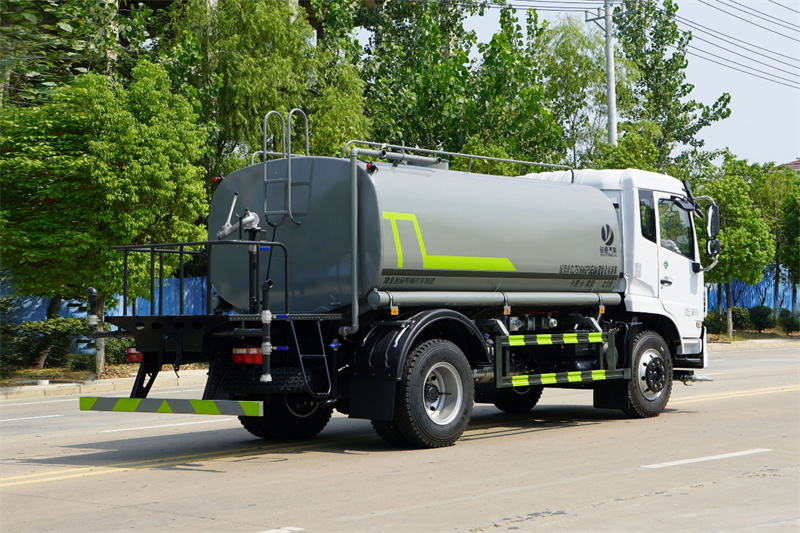 東風福瑞卡12噸灑水車產品標配前噴(鴨嘴)、后沖、后灑、側噴、后置式工作 平臺,平臺上配置綠化水炮(可 360°旋轉,既可以調成柱狀,也可 以調成霧狀,更可以調成直沖狀、大雨、中雨、小雨、毛毛雨),配 備優質大功率專用灑水泵(可自吸自排,可從河里或池塘抽水到罐體), 取力器,雜物過濾網,消防接口,自流球閥系統、取力器、球閥、濾網 均為國家標準產品,主管道加粗,法蘭墊、法蘭盤加厚,大通徑球閥。 整體具備性能優良安全可靠、效率高、流量大、維修方便等特點