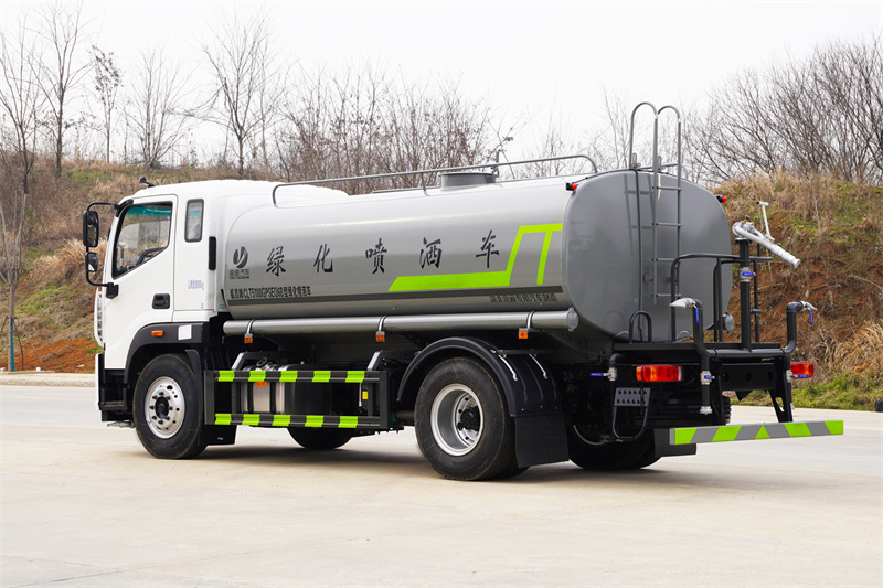 福田歐航12噸灑水車產品標配前噴(鴨嘴)、后沖、后灑、側噴、后置式工作 平臺,平臺上配置綠化水炮(可 360°旋轉,既可以調成柱狀,也可 以調成霧狀,更可以調成直沖狀、大雨、中雨、小雨、毛毛雨),配 備優質大功率專用灑水泵(可自吸自排,可從河里或池塘抽水到罐體), 取力器,雜物過濾網,消防接口,自流球閥系統、取力器、球閥、濾網 均為國家標準產品,主管道加粗,法蘭墊、法蘭盤加厚,大通徑球閥。 整體具備性能優良安全可靠、效率高、流量大、維修方便等特點。