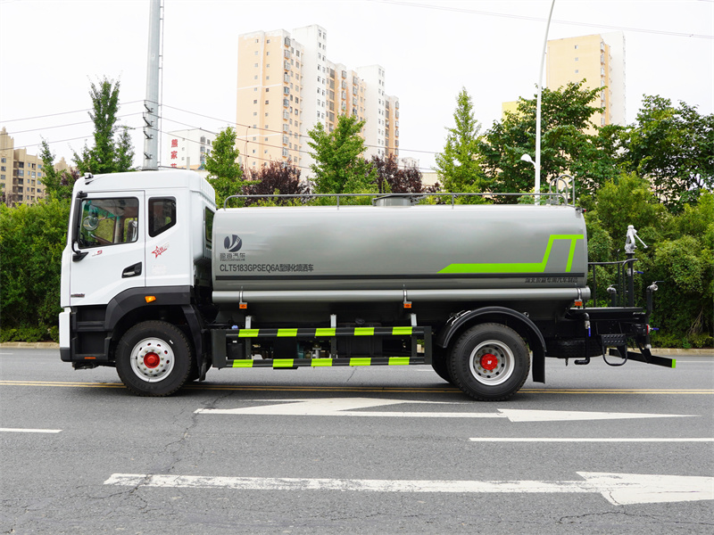 產品標配前噴 (鴨嘴) 、后沖、后灑、側噴、后置式工作 平臺,平臺上配置綠化水炮 (可 360°旋轉,既可以調成柱狀,也可 以調成霧狀,更可以調成直沖狀、大雨、中雨、小雨、毛毛雨) ,配 備優質大功率專用灑水泵(可自吸自排,可從河里或池塘抽水到罐體), 取力器,雜物過濾網,消防接口, 自流球閥系統、取力器、球閥、濾網 均為國家標準產品,主管道加粗,法蘭墊、法蘭盤加厚,大通徑球閥。 整體具備性能優良安全可靠、效率高、流量大、維修方便等特點
